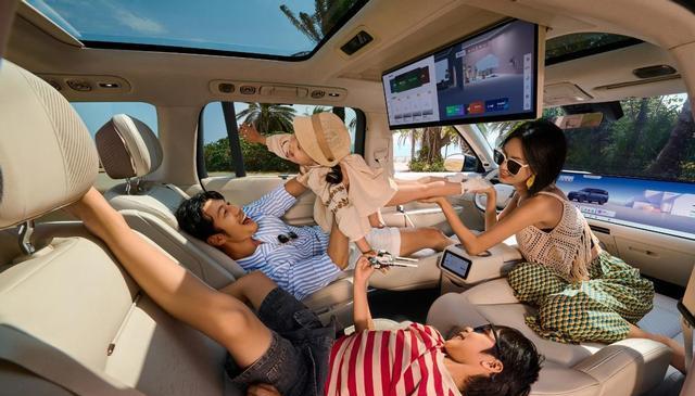二排的设计则更贴近家庭互动场景:双180°电动旋转座椅配合超长滑移行程,孩子可面对面玩积木,父母可以坐着聊天,累了甚至可以躺下小憩。车内配置也充分体现了家庭需求思维:冷暖车载冰箱、侧窗隐私遮阳帘、30英寸6K双巨幕及四音区独立音响等,让用车体验更贴心。相比单纯堆配置,领克900通过对每一处细节的优化,缓解了家庭用户的空间焦虑。